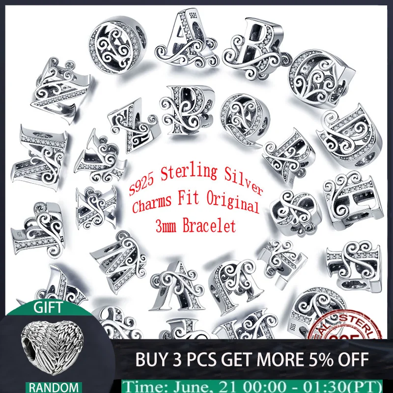 Perles à breloques 26 lettres en argent Sterling 100% 925, adaptées aux bracelets et accessoires Pandora DIY, tendance