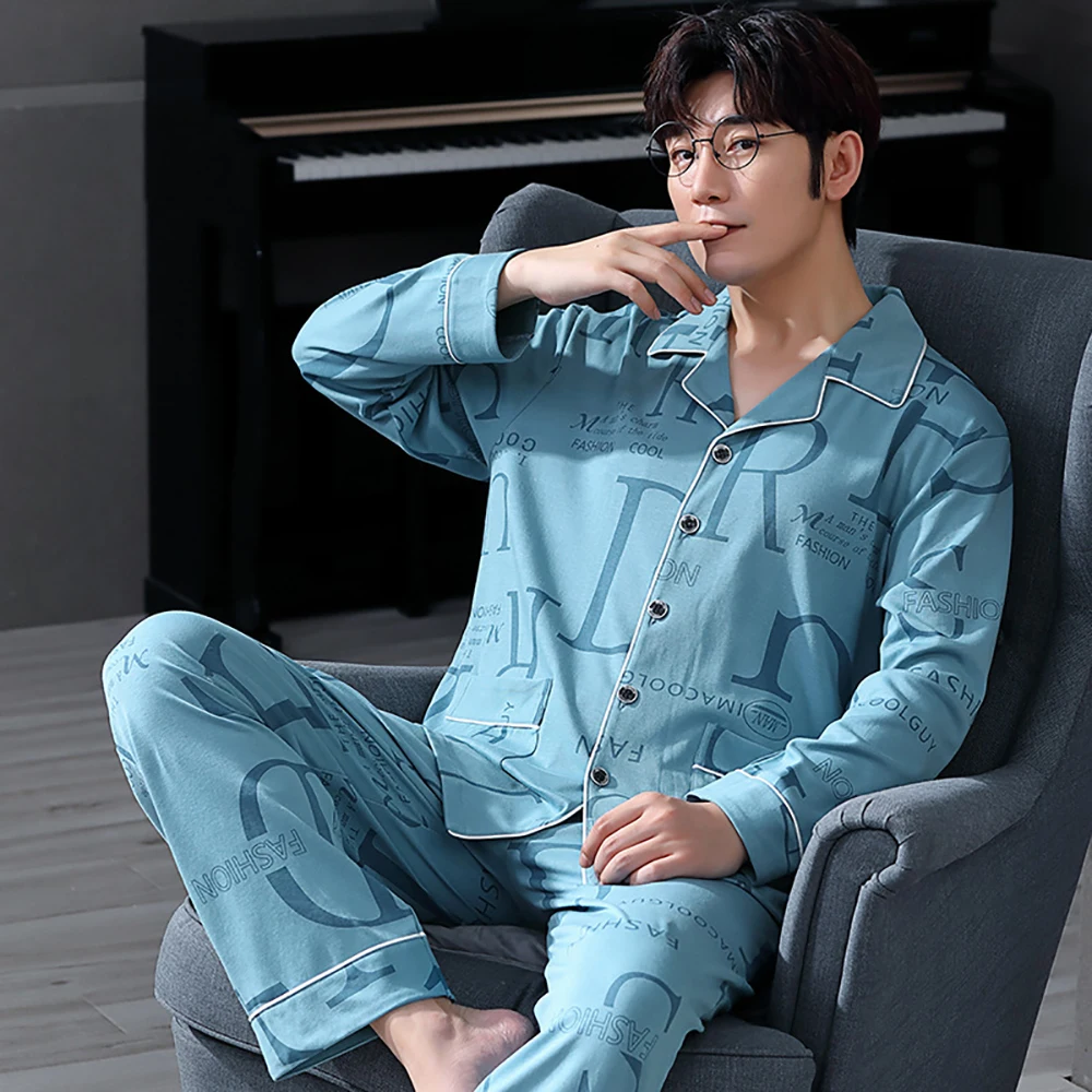 Trendyol – pyjama imprimé pour homme, ensemble 100% coton, respirant, décontracté, grande taille, printemps automne