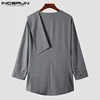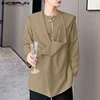 INCERUN – Blazer décontracté à manches longues pour homme, couleur unie, mode, col rond, costumes de loisirs, Streetwear, boutons irréguliers, manteaux, 2021, S 5XL