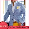 Blazer à carreaux à boutonnage simple pour homme, veste à revers, à manches longues, de loisirs, Slim, à la mode, nouveau Style, 2021