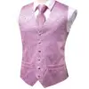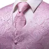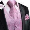 Hi Tie – veste en soie 100% pour homme, couleur rose Paisley, 4 pièces, ensemble de boutons de manchettes, cravate, mouchoir, gilet ajusté pour fête de mariage