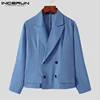 INCERUN – Blazer à revers à manches longues pour homme, tenue décontractée, Streetwear, couleur unie, manteau court de loisirs, 5XL, collection automne 2021