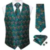 Gilet de cérémonie pour hommes, vert sarcelle, Paisley 2022 soie, gilet de fête de mariage, broche cravate, ensemble carré, nouvelle collection 100%