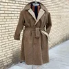 Costume marron à chevrons avec ceinture en laine épaisse pour hommes, pardessus Long à revers, veste d'affaires à la mode