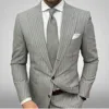 Costume à rayures grises pour hommes, veste avec poches, 2 pièces, smoking Simple, marié, mariage, mode hommes d'affaires, manteau formel