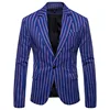 Costume à revers cranté pour homme, veste à rayures, costume d'affaires, tenue de marié, veste Blazer, manteau, une pièce, bleu