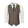 Gilet de costume en laine Tweed marron pour homme, gilet de marié personnalisé, Vintage, à chevrons, coupe cintrée
