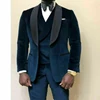 Blazer + pantalon + gilet en velours pour hommes, 3 pièces, col châle, smoking Business Slim Fit, marié de mariage