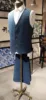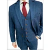 Costume en laine bleu à chevrons pour hommes, costume sur mesure de Style masculin rétro, Blazer, costume d'affaires de mariage (veste + pantalon + gilet)
