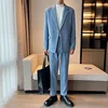 OIMG – costume décontracté de style coréen, costume deux pièces en tissu doux plissé et léger, costume ample et tendance pour hommes
