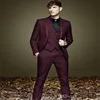 Beau Costume bordeaux à revers cranté pour Homme, avec bouton unique, élégant, pour marié formel de mariage, coupe cintrée, à la mode, 2022