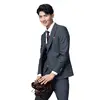 Vêtements à la mode pour hommes, costume de loisirs gris foncé à rayures, revers à un bouton, costume d'affaires pour marié, smoking de mariage formel