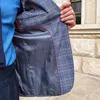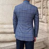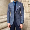 Manteau à revers à carreaux gris et bleu marine pour hommes, 2 pièces, de haute qualité, avec deux boutons, pantalon d'affaires, tenue formelle de Style britannique