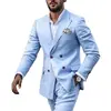 Vêtements à la mode pour hommes, bleu ciel, revers à visière, Double boutonnage, tenue formelle de bureau, Slim Fit, 2 pièces, nouvelle collection 2022