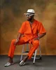 Blazer à revers cranté pour homme, 2 pièces, couleur Orange, manches courtes, pantalon, costumes pour mariage, sur mesure, ensembles de costumes pour hommes, tenue de soirée