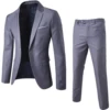 Costume pour homme, 2 pièces/ensemble, grande taille, couleur unie, manches longues, revers, bouton Slim, costume d'affaires