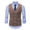 Gilet à ceinture d'hirondelle pour homme, coupe cintrée, Double boutonnage, avec poche, col châle, costume formel