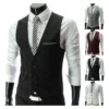 Gilet à la mode pour hommes, couleur unie, col en V, sans manches, avec poche à boutons, Blazer, costume, 2021