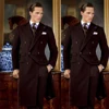 Veste de costume en Tweed pour homme, manteau de smoking de bal, Long en laine, sur mesure, couleur bordeaux, hiver