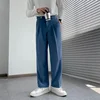 Pantalon de costume bleu/noir/blanc pour homme, vêtement décontracté, ample et droit, mode coréenne, M 3XL