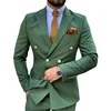 Costumes Tuxedos de mariage pour Hommes, 2 pièces, vert, Double boutonnage, Blazer sur mesure pour bal de promo, costume formel Business
