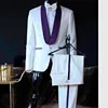 Costume 2 pièces pour marié blanc, Slim, Tuxedos de mariage sur mesure, châle à revers, pour bal de mariage