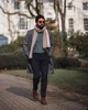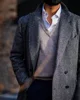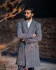 Manteau Long à Double boutonnage pour homme, épais et chaud, gris à chevrons, grande taille, décontracté, formel, business, veste sur mesure
