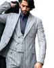 Costumes à rayures bleues pour hommes, 3 pièces, Blazer sur mesure, veste et pantalon, Tuexdos de mariage, ensembles de costumes de bal