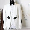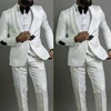 Costumes Jacquard élégants pour Hommes, 3 pièces, blanc, Costumes pour Hommes, sur mesure, Tuexdos de mariage, boucle noire, Blazer de bal, ensembles de pantalons