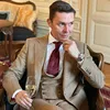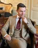 Ensemble de costumes pour hommes, 3 pièces, pied de poule, marron, formel, Business, Blazer sur mesure, gilet, pantalon, Tuexdos de mariage, vêtements de bal