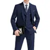 Veste et pantalon, 3 pièces, bleu marine, gilet, Blazer à revers cranté, pantalon de smoking pour marié, meilleur costume pour homme, manteau + pantalon + cravate + gilet