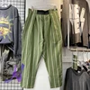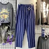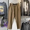 KAPITAL – pantalon rétro en coton et lin pour hommes et femmes, à neuf points, décontracté, à rayures