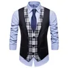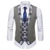 Blazer en Patchwork à simple boutonnage et col en v pour homme, gilet décontracté, à la mode, Style anglais