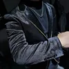 Blazer en velours à rayures noires pour homme, de haute qualité, à revers cranté, à bouton unique, décontracté, élégant, Slim, vêtements de mariage