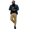 Blazer vert foncé avec pantalon kaki pour hommes, costumes à la mode, Style de rue décontracté, tissus confortables et respirants, ensemble de manteau masculin