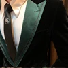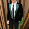 Blazer de luxe en velours noir à bouton unique pour hommes, Slim, Slim, avec revers vert, Style britannique, tenue de soirée, Banquet, dernière collection