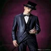 Costume de marié 3 pièces en Satin, bleu marine, à revers, veste + pantalon + gilet