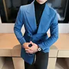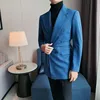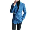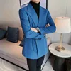 Blazer à Double boutonnage avec ceinture et revers pour homme, costume de soirée, de bal, de mariage, élégant, de marque, sur mesure, bleu, dernière collection