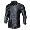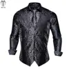 Hi Tie – ensemble de chemises et gilets en soie pour hommes, Jacquard, noir, argent, Floral, boutons de manchette, cravate, Business, mariage