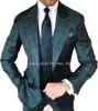 Ensemble de costumes de mariage à carreaux pour hommes, veste + pantalon + gilet, Blazer à grille à revers, pantalon sur mesure, costume de smoking pour marié, vert