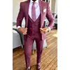 Costume à col haut bordeaux pour hommes, nouvelle collection, Blazer 3 pièces, slim, sur mesure, simple boutonnage, mode décontractée, offre spéciale