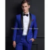 Ensemble veste + pantalon pour hommes, 2 pièces, manteau châle à revers, sur mesure, Blazer bleu Royal, costumes pour garçons d'honneur, tenue de fête de mariage