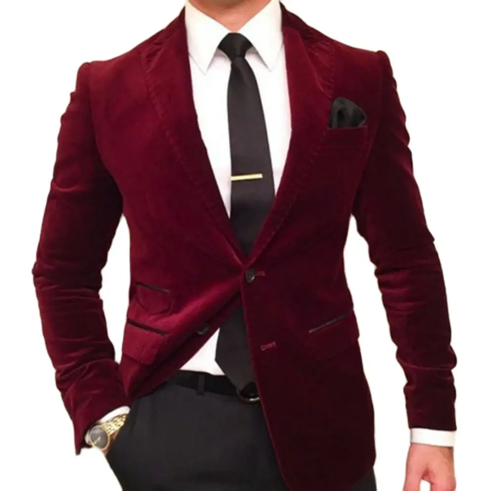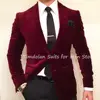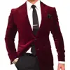 Manteau à revers pour homme, 2 pièces, veste + pantalon, Blazer en velours bordeaux, sur mesure, costumes pour garçons d'honneur, tenue de fête de mariage