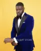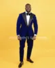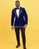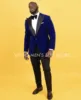 Blazer en velours bleu chaud d'hiver avec pantalon noir, costumes pour hommes, Slim Fit 2 pièces, vêtements de mariage, meilleur marié/dernier ensemble formel pour homme