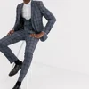 Costume de mariage à carreaux gris pour homme, ensemble veste + pantalon + gilet, Blazer à grille à revers cranté, pantalon de soirée sur mesure