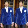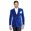 Costume Tuexdos en velours bleu Royal pour Homme, Blazer + pantalon noir, à la mode, formel, Business, mariage, sur mesure, manteau de bureau