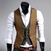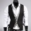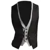 Dropshipping!! Faux gilet deux pièces col en V sans manches pour hommes, poche à boutons, Slim Fit