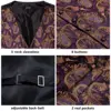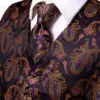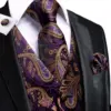 Hi Tie Silk Mens Vests Purple Paisley Jaquard Waistcoat Tie Hankerchief Cufflinks Gold Collar Pin Set for Men Dress Suit Wedding