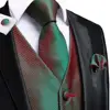 Hi tie – gilet en soie pour hommes, vert, rouge, solide, Jacquard, cravate, mouchoir, boutons de manchette, col doré, ensemble de broches, robe de mariage