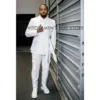 Costume blanc avec ceinture pour homme, 2 pièces, tissu en coton, ample, chaud pour l'hiver, pour mariage, bal, soirée, vêtements décontractés, Blazer + pantalon
